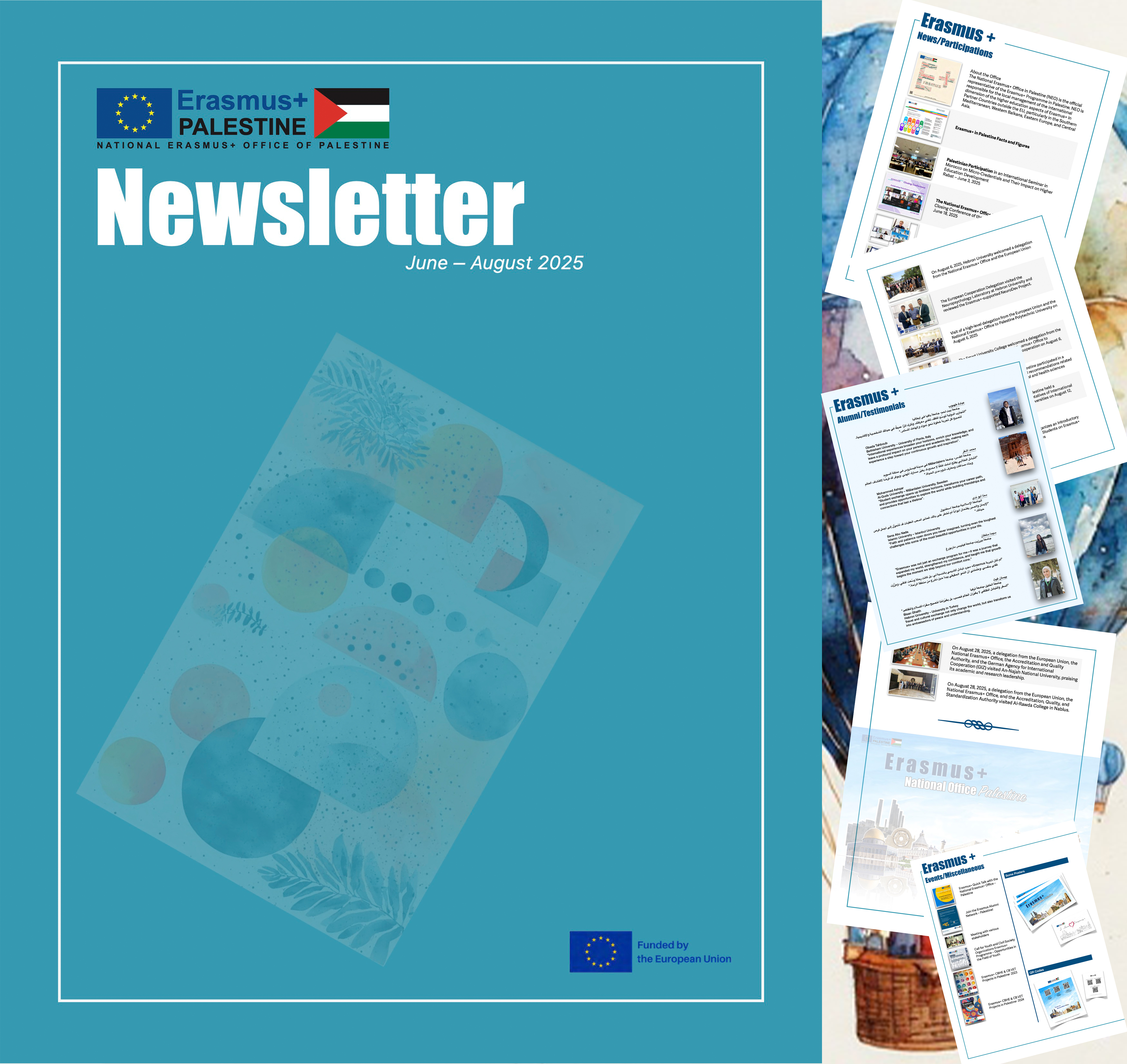 The National Erasmus+ Office (NEO) in Palestine regularly publishes newsletters as part of its dissemination strategy to keep stakeholders informed about Erasmus+ programmes, calls, and activities.